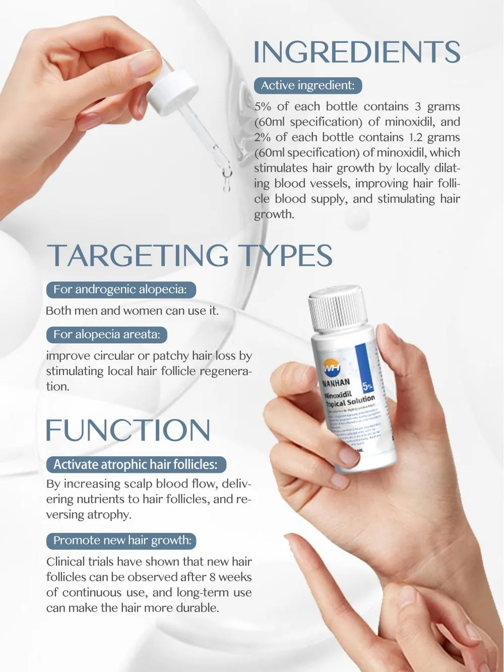 Minoxidil works by promoting hair growth and follicle size, often as a 5% solution or foam, requiring consistent use (2-4 months to see results) and stopping it will likely reverse gains, with side effects like scalp irritation possible.